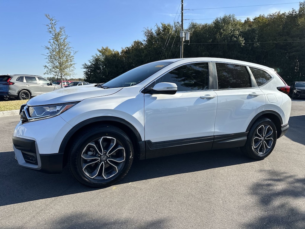 Priced below KBB Fair Purchase Price! Honda Certified! 7 year 100,000 Mile Factory Warranty! ONE OWNER, CLEAN CARFAX, APPLE CARPLAY, ANDROID AUTO, BLUETOOTH, HANDSFREE, BACKUP CAMERA, POWER WINDOWS, POWER LOCKS, ALLOY WHEELS, LOCAL TRADE, EXCELLENT SERVICE HISTORY, COME SEE THIS TODAY!, PRICE INCLUDES ALL RECONDITIONING FEES, 4D Sport Utility, 1.5L I4 DOHC 16V, CVT, FWD, Black Cloth, 18 Alloy Wheels, 4-Wheel Disc Brakes, 6 Speakers, ABS brakes, Adaptive Cruise Control: Adaptive Cruise Control (ACC) with Low-Speed Follow, Air Conditioning, Alloy wheels, AM/FM radio: SiriusXM, Apple CarPlay/Android Auto, Auto High-beam Headlights, Automatic temperature control, Blind Spot Information (BSI) System warning, Brake assist, Bumpers: body-color, Cloth Seat Trim, Compass, Delay-off headlights, Driver door bin, Driver vanity mirror, Dual front impact airbags, Dual front side impact airbags, Electronic Stability Control, Exterior Parking Camera Rear, Forward collision: Collision Mitigation Braking System (CMBS) + FCW mitigation, Four wheel independent suspension, Front anti-roll bar, Front Bucket Seats, Front Center Armrest, Front dual zone A/C, Front reading lights, Heated door mirrors, Heated Front Bucket Seats, Heated front seats, Illuminated entry, Kayak Attachment, Low tire pressure warning, Occupant sensing airbag, Outside temperature display, Overhead airbag, Overhead console, Panic alarm, Passenger door bin, Passenger vanity mirror, Power door mirrors, Power driver seat, Power moonroof, Power steering, Power windows, Radio data system, Radio: 180-Watt AM/FM/HD/SiriusXM Audio System, Rear anti-roll bar, Rear seat center armrest, Rear window defroster, Rear window wiper, Remote keyless entry, Security system, Speed control, Speed-sensing steering, Split folding rear seat, Spoiler, Steering wheel mounted audio controls, Tachometer, Telescoping steering wheel, Tilt steering wheel, Traction control, Trip computer, Turn signal indicator mirrors. 28/34 City/Highway MPG KBB Fair Market Range High: $27,433 CARFAX One-Owner. Clean CARFAX. Certified. 2022 Honda CR-V EX **CERTIFIED** Platinum White Pearl 2022 Honda CR-V EX **CERTIFIED** 4D Sport Utility FWD CVT 1.5L I4 DOHC 16VRecent Arrival!