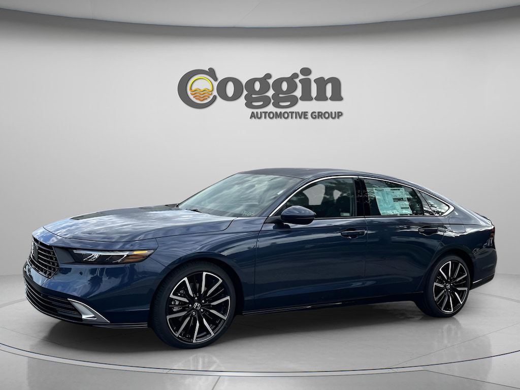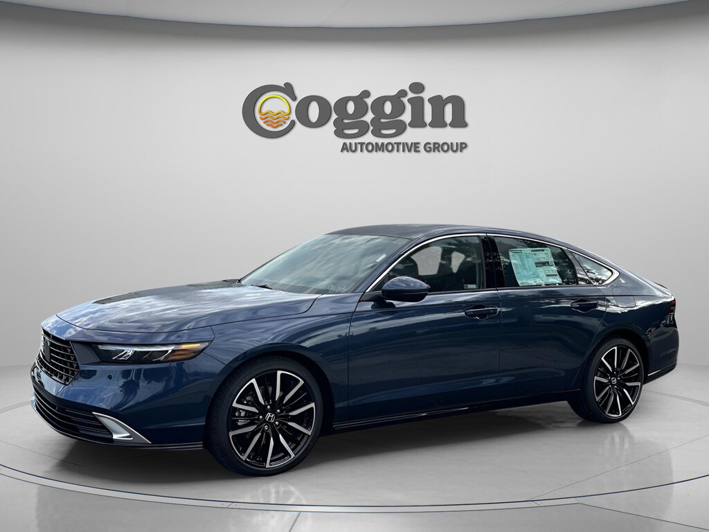 Canyon River Blue Metallic 2025 Honda Accord Hybrid 4D Sedan Touring eCVT 2.0L I4 DOHC 16V 46/41 City/Highway MPG 2.0L I4 DOHC 16V.