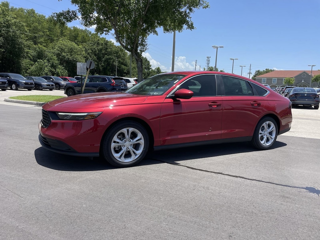 Radiant Red Metallic 2025 Honda Accord 4D Sedan LX CVT 1.5T I4 DOHC 16V Turbocharged VTEC 29/37 City/Highway MPG Gray Cloth.