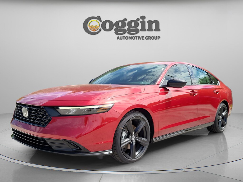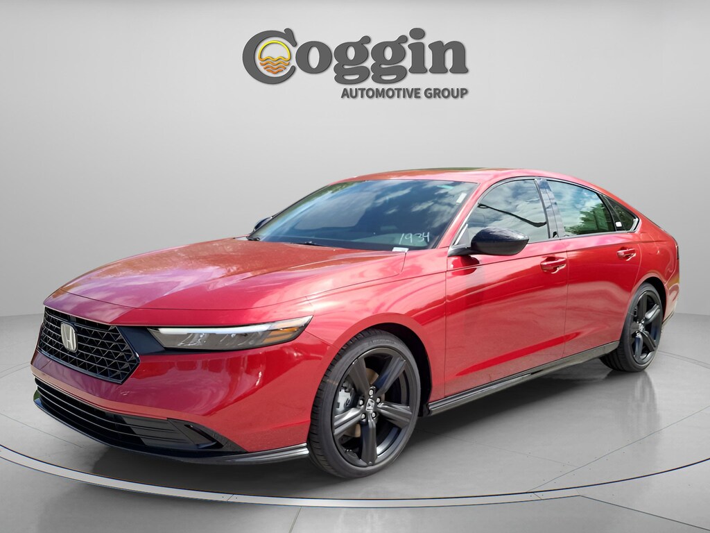 Radiant Red Metallic 2026 Honda Accord Hybrid 4D Sedan Sport-L CVT 2.0L I4 DOHC 16V 46/41 City/Highway MPG 2.0L I4 DOHC 16V.
