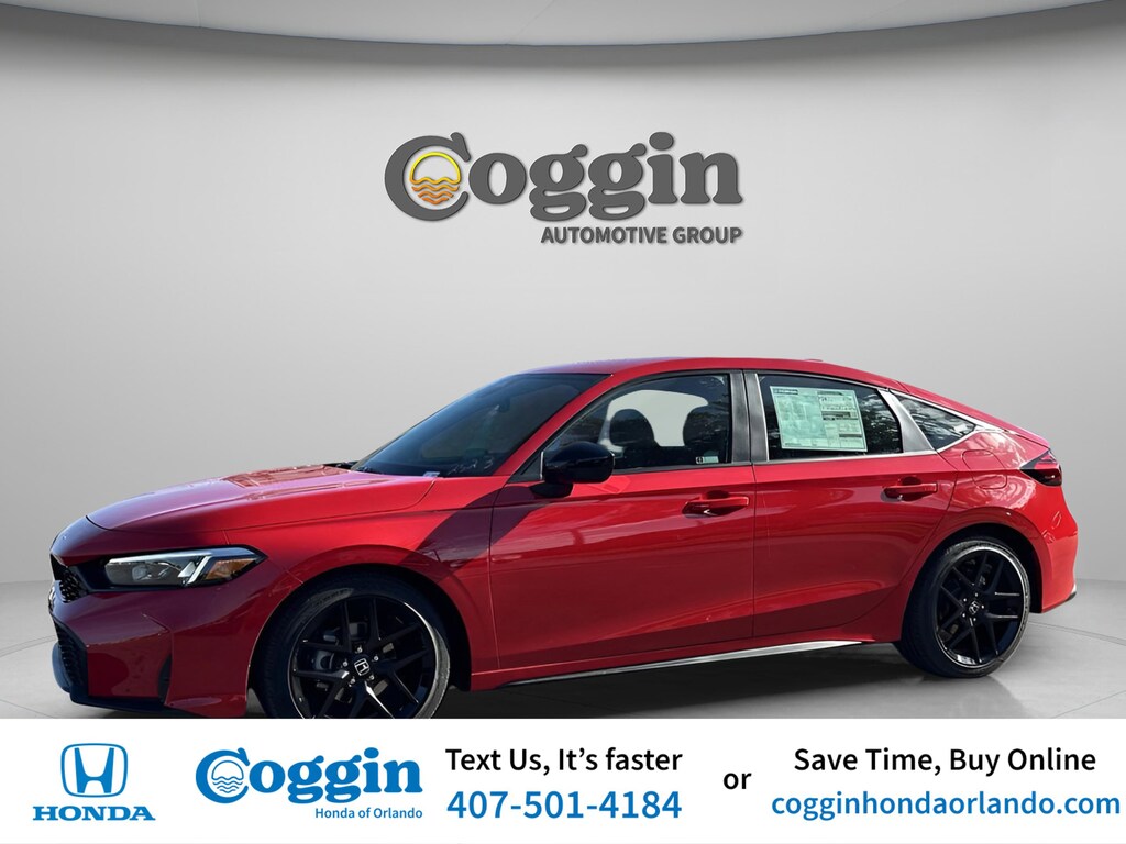 Rallye Red 2026 Honda Civic 4D Hatchback Sport CVT 2.0L I4 DOHC 16V 30/38 City/Highway MPG Black Artificial Leather.