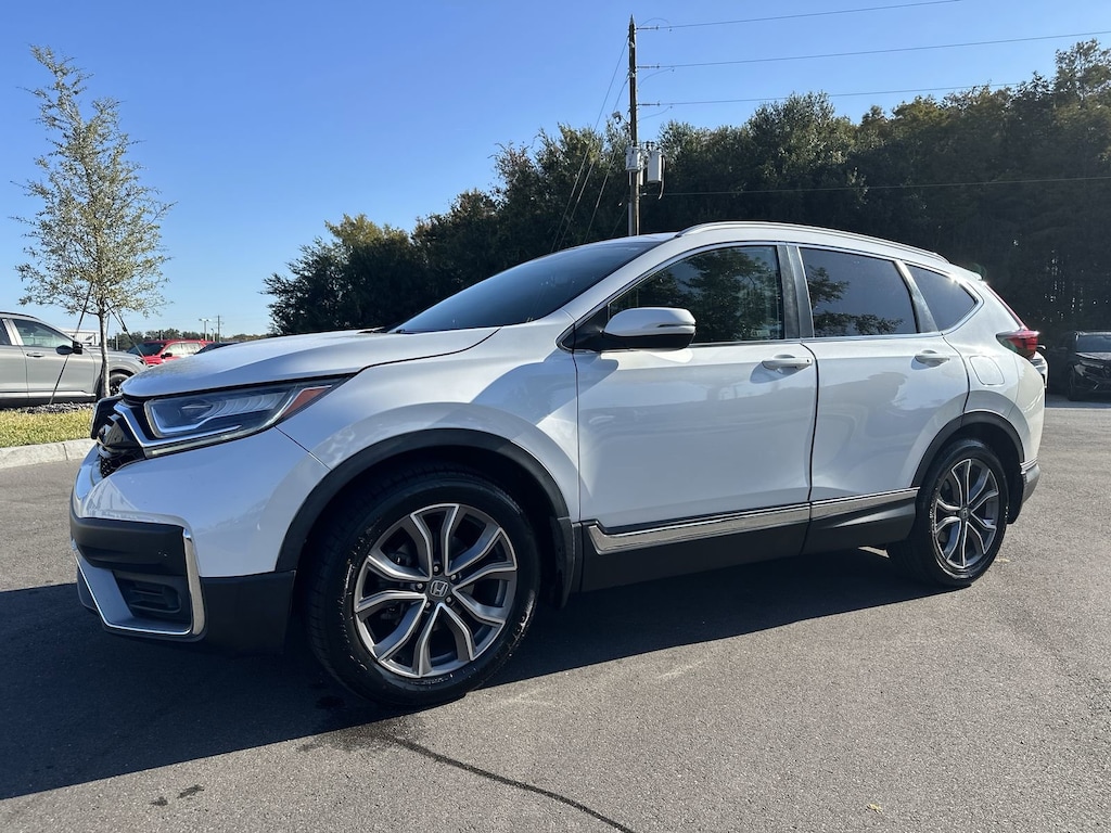 Priced below KBB Fair Purchase Price! Honda Certified! 7 year 100,000 Mile Factory Warranty! HONDA CERTIFIED, ONE OWNER, CLEAN CARFAX, NAVIGATION, BLUETOOTH, HANDSFREE, BACKUP CAMERA, LEATHER, POWER WINDOWS, POWER LOCKS, ALLOY WHEELS, LOCAL TRADE, EXCELLENT SERVICE HISTORY, COME SEE THIS TODAY!, PRICE INCLUDES ALL RECONDITIONING FEES, CR-V Touring **CERTIFIED**, 4D Sport Utility, 1.5L I4 DOHC 16V, CVT, FWD, Black Leather, 9 Speakers, Air Conditioning, AM/FM radio: SiriusXM, Automatic temperature control, Front dual zone A/C, Memory seat, Navigation system: Honda Satellite-Linked Navigation System, Power driver seat, Power steering, Power windows, Radio data system, Radio: 330-Watt AM/FM/HD/SiriusXM Prem Audio System, Rear window defroster, Remote keyless entry, Steering wheel mounted audio controls. 28/34 City/Highway MPG KBB Fair Market Range High: $25,894 Clean CARFAX. Certified. 2021 Honda CR-V Touring **CERTIFIED** Platinum White Pearl 2021 Honda CR-V Touring **CERTIFIED** 4D Sport Utility FWD CVT 1.5L I4 DOHC 16VRecent Arrival!